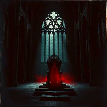 Electro dark track with heavy synths and male tenor vocals, Ominous, hellish atmosphere, cinematic and powerful, with a commanding, chaotic, infernal energy