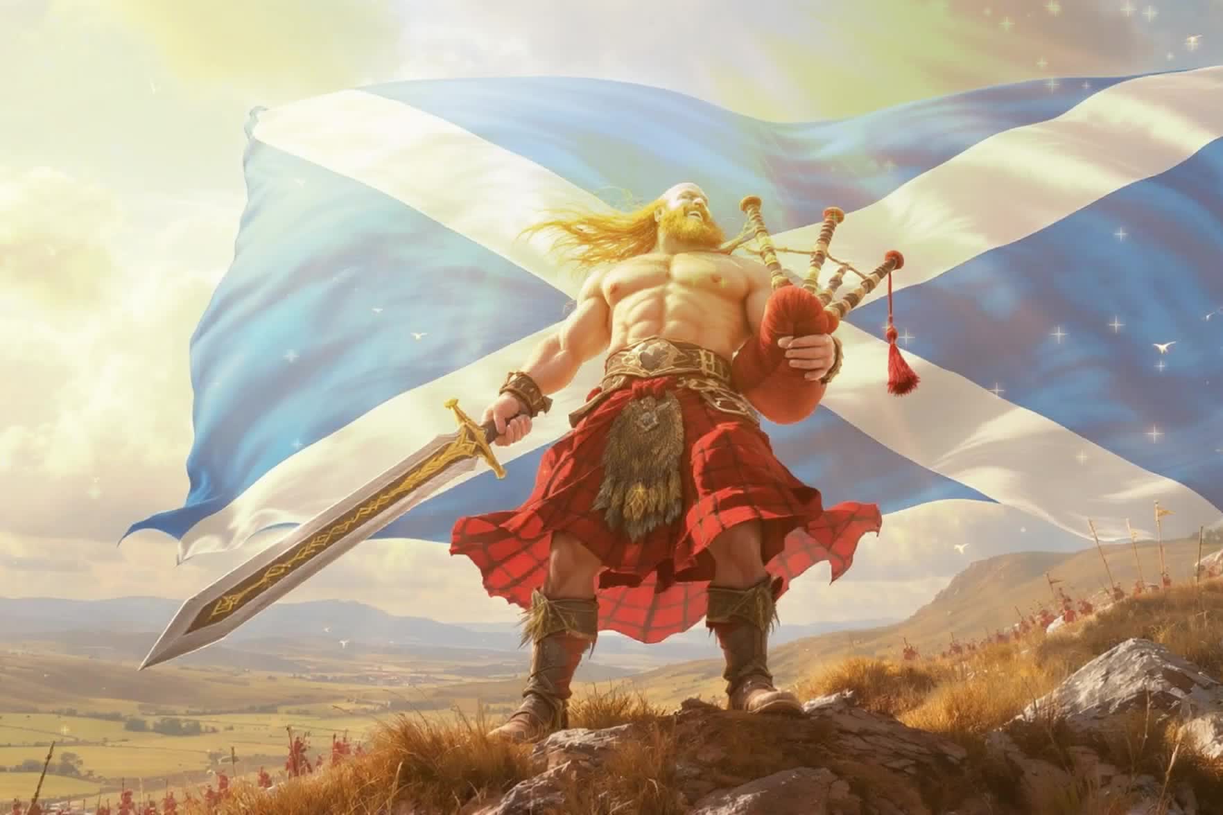 folk metal, symphonic metal, Scottish bagpipes, duduk, fiddle, harp, male vocals, dark male choir, anthemic, live show, audience, crowd noises