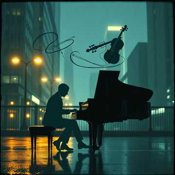surround sound for an immersive journey, piano-driven with cello and violin accompaniment, harmonica solo at intro and outro, sad, reflective, experimental, violin, melancholy, wrestling, cello, pop, male vocals, resolute