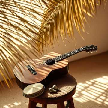 folk, Raw, intimate tropical folk with male vocals; earthy nylon-string guitar in a loose island groove, hand percussion and ankle bells, faint maracas, Verses are close-mic, almost whispered; chorus blooms with rough gang shouts and claps, Keep it live-room, one-take feel, breaths and string squeaks in the mix, energy rising slightly by the final chorus then dropping to a hushed last line, raw, tropical