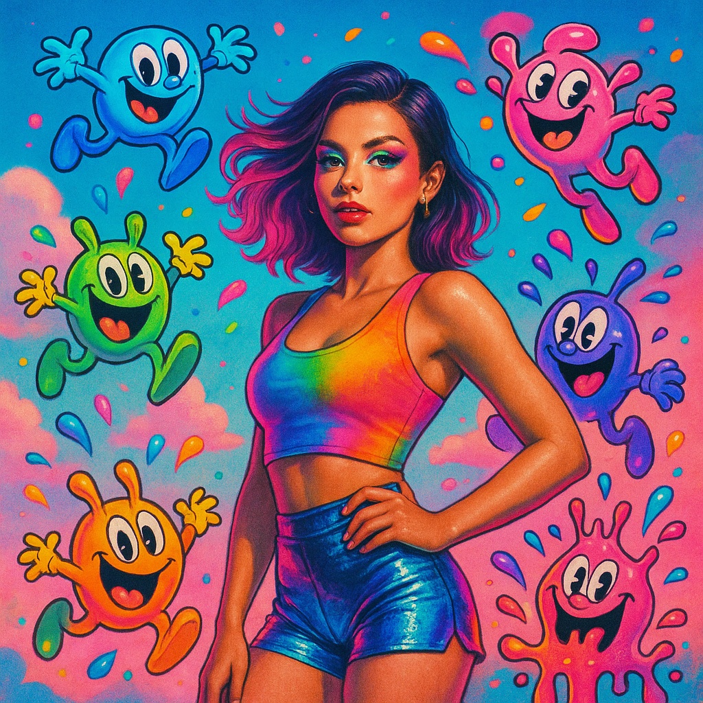A high-energy EDM track fusing chiptune synths, bouncy 8-bit arpeggios, and playful pitched-up “chipmunk” vocals, Verses layer quirky sound effects and crisp drum machines, building into explosive, catchy drops with punchy bass, retro game samples, and gleeful melodic hooks