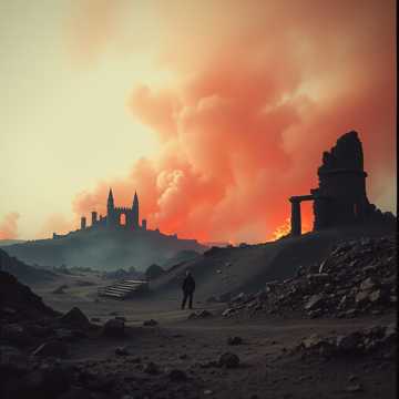 The song opens with ethereal synth pads and piano, then erupts into heavy, syncopated drums and distorted bass, The lead guitar, tuned in all fifths F1–E4, soars with wide, cinematic melodies in the Lydian augmented scale, A dramatic female contralto weaves raspy, powerful vocals throughout, backed by layered choirs, Verses blend hard rock ballad textures; theatrical rock opera elements drive dynamic shifts, with extended instrumental passages and climactic guitar solos for epic impact