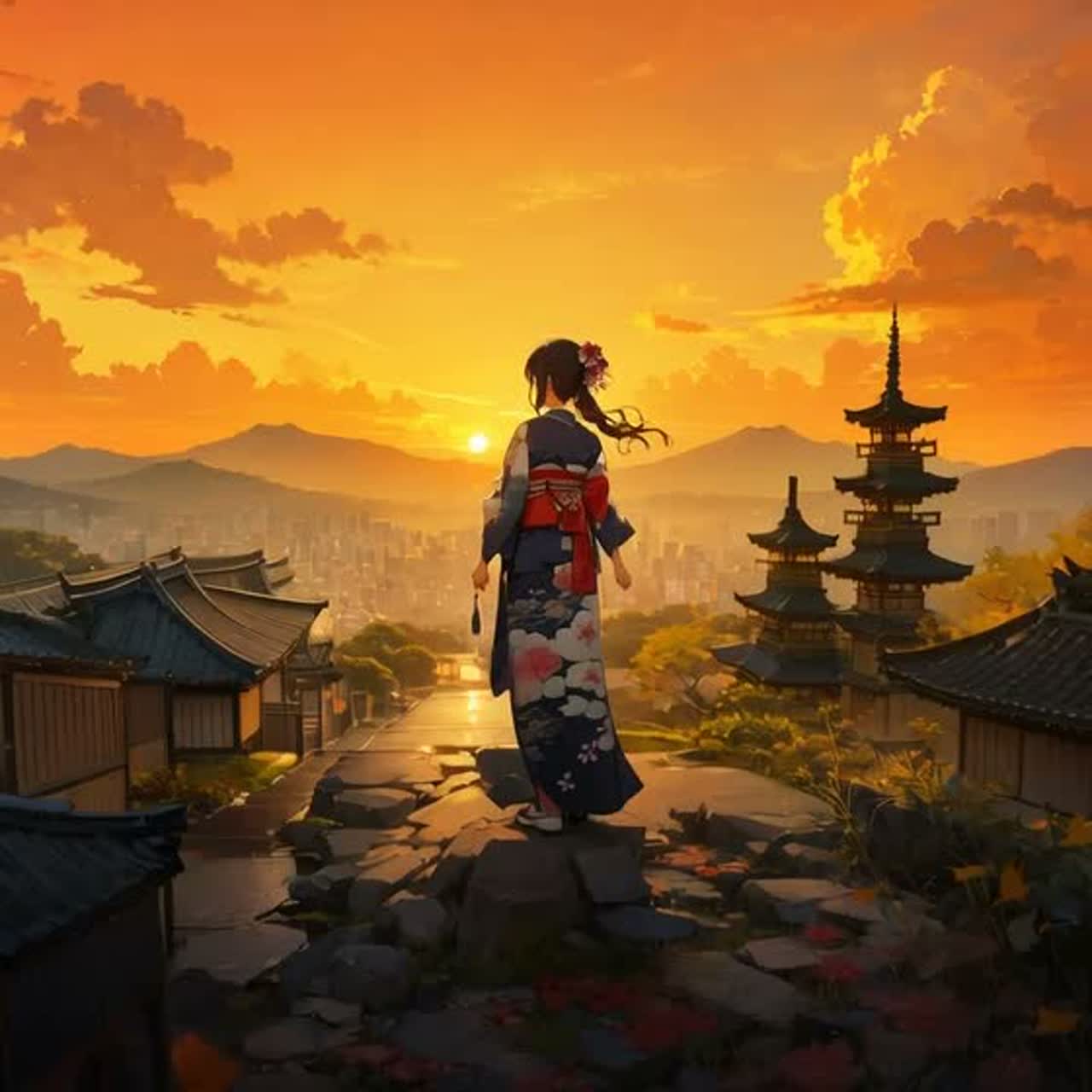 This cinematic, traditional Japanese ballad features the Vocaloid Miku, It features expansive piano and strings, delicate taiko drumming, delicate shakuhachi phrases, and traditional bell sounds, The verses maintain an intimate and tranquil atmosphere, while the chorus is further enhanced by majestic male vocals and rich harmonies, The bridge settles back down with solo piano and Vocaloid vocals, before kicking off again with a full orchestral soar and a long, majestic outro
