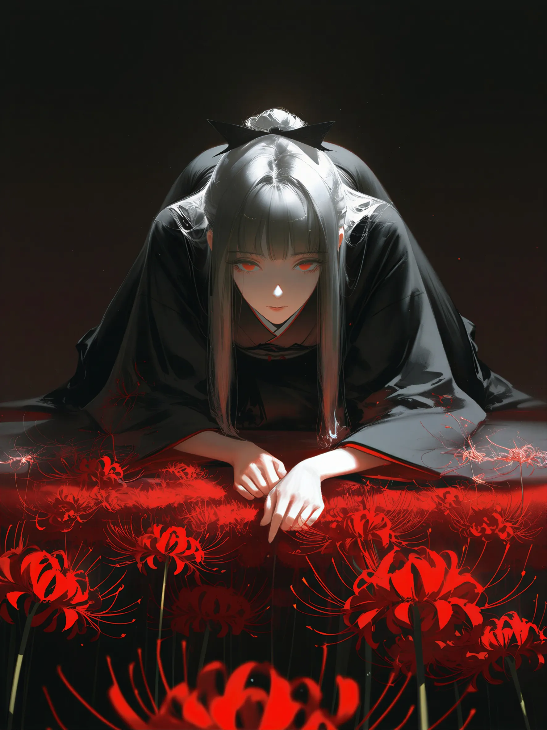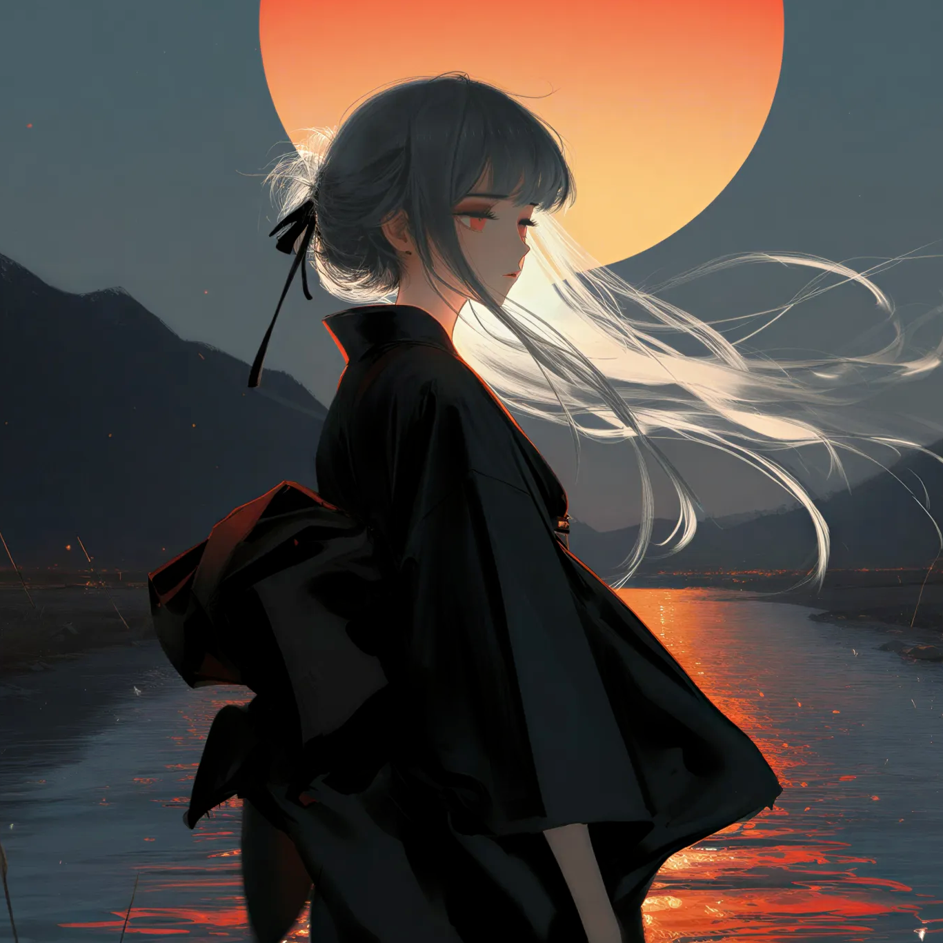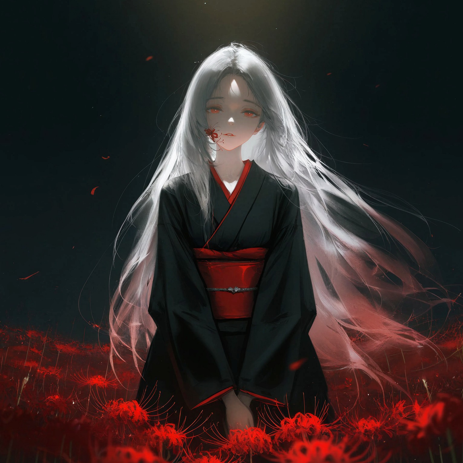 Instruments: Extremely minimal, No taiko rhythm, Only distant low drone, sparse shamisen tones, occasional koto harmonics, faint shakuhachi breaths, Long silence between phrases; a quiet shrine at dawn, Structure: Free-time rather than strict rhythm, Verses move slowly with large pauses, Chorus is delivered as heightened chant, No climax, Ending fades into near silence, Vocals: Female Japanese vocal in strong shigin-style recitative, Elongated vowels, pitch bends instead of vibrato, dramatic pauses, ceremonial spoken-sung projection, Emotion restrained but formal and heavy, Theme: After the Sanzu farewell, the woman remains in the living world, accepts loss, releases prayer, and continues living in silence