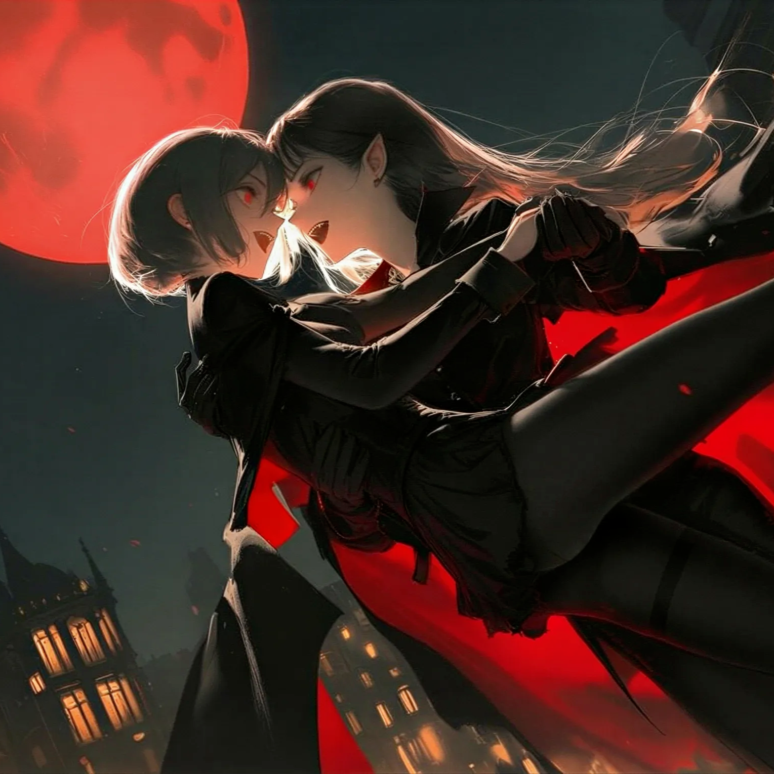 Forbidden love between a vampire and a human, Flamenco expresses blood, fate, desire, and choice, Castanets act like a heartbeat, Gothic elements add darkness and immortality, Cinematic, theatrical, no EDM