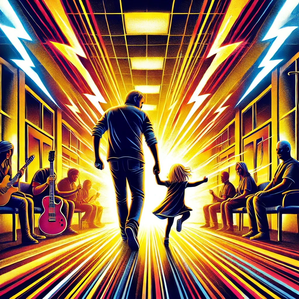 rock, electrifying guitar riffs, big bass, pounding drums, emotional melody, guitar solo