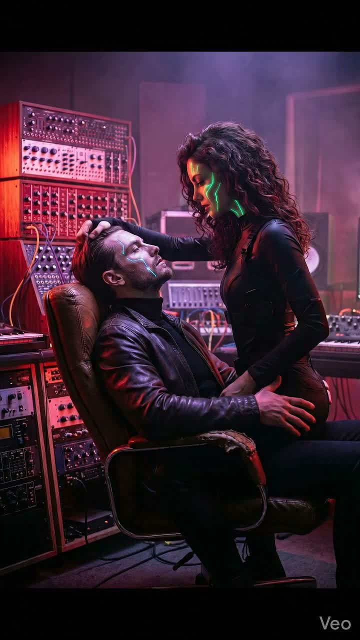 Darkwave, Alternative R&B, Industrial Pop, Female/Male vocals, Male Baritone and Female Falsetto Duet, Cinematic Noir, Slow Tempo, 105 BPM, Sexy, Atmospheric, Throbbing Bass, Retro-Futurism
