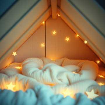 Slow, dream-like indie folk, Song begins with gentle Intro instrumental, fingerpicked guitar no voices, Rest of the song has Gentle fingerpicked acoustic guitars (one warm low, one capoed high for shimmer), soft upright acoustic bass, no drums, Lead vocal: tender young girl's voice, warm and intimate, Light female harmony: soft, entering only in choruses and final verse, singing thirds above the melody like a lullaby echo, Reverb: light and airy, creating a dreamy, nighttime feel, Tempo ~65 bpm, Mood: tender, hushed, intimate, joyful