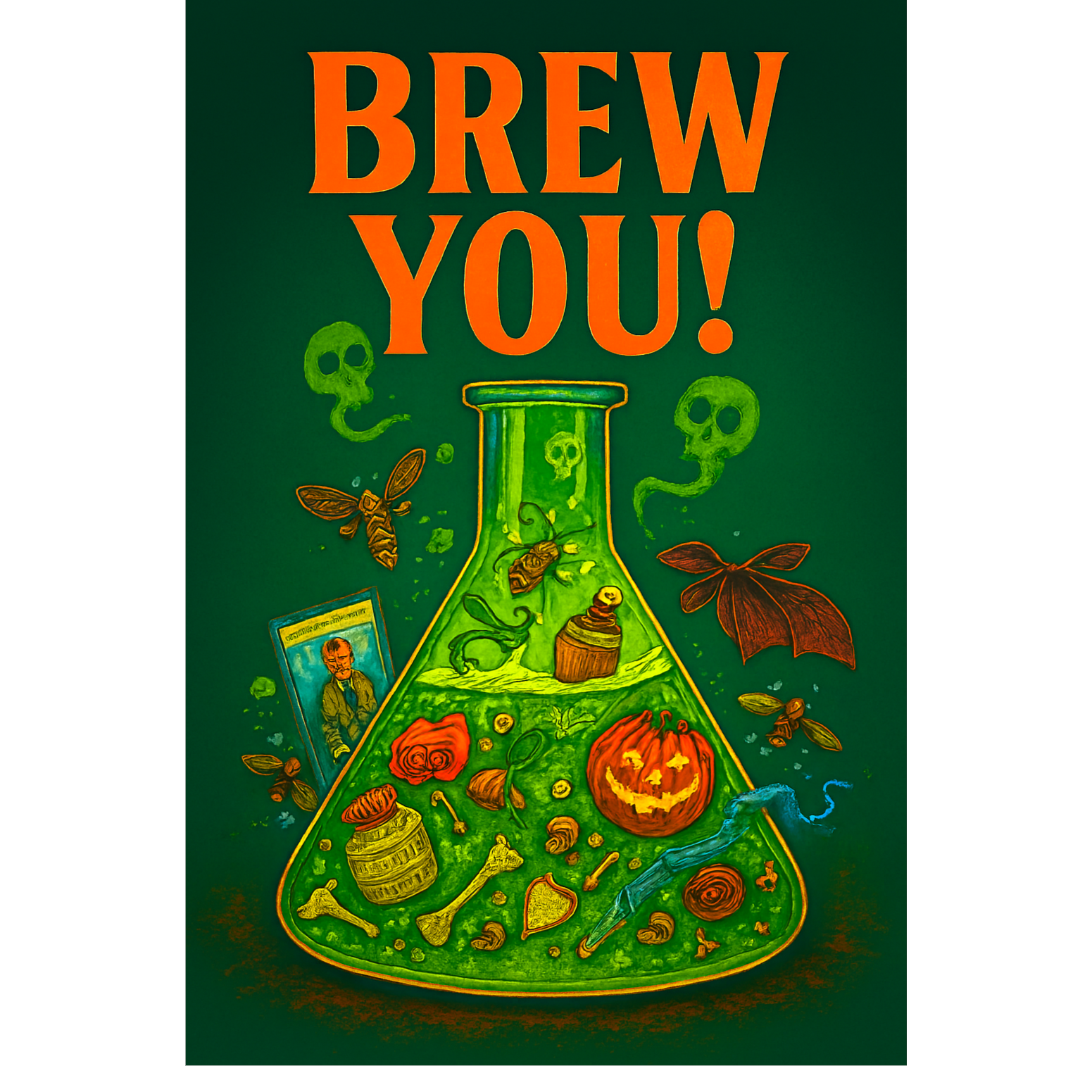 pop punk, melodic, spooky, 1980s, vaporwave, horror punk, distorted guitar, melodic bass, punchy drums, catchy chorus, novelty, sarcastic, fun, musical, catchy chorus
