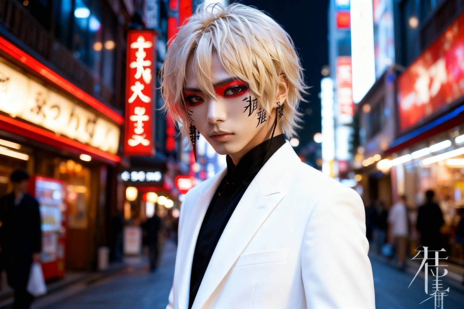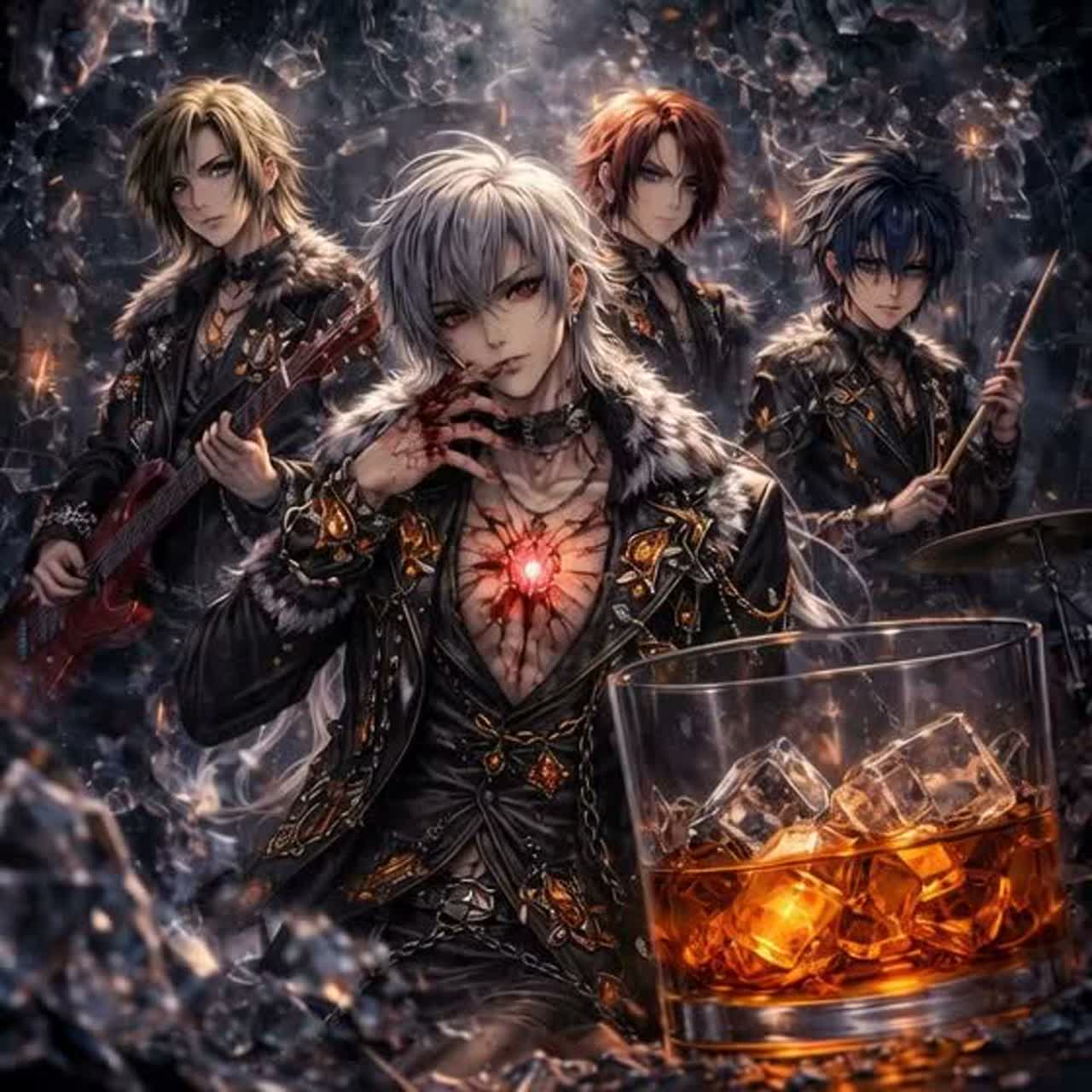 Japanese, 90's Visual-kei, dark melodies, Melodic Guitar solo, Build up, Multi-layered harmonies, Ambient reverb, Cinematic arrangement, male vocals, Emotional, Visual rock, Distorted Guitar, Powerful drum beats