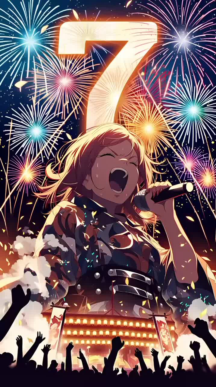 Female vocal, highly expressive and emotional, Soft whisper → powerful belt transitions, slight rasp allowed, Clear Japanese pronunciation, energetic delivery, Crowd chants for live festival feel, Structure: