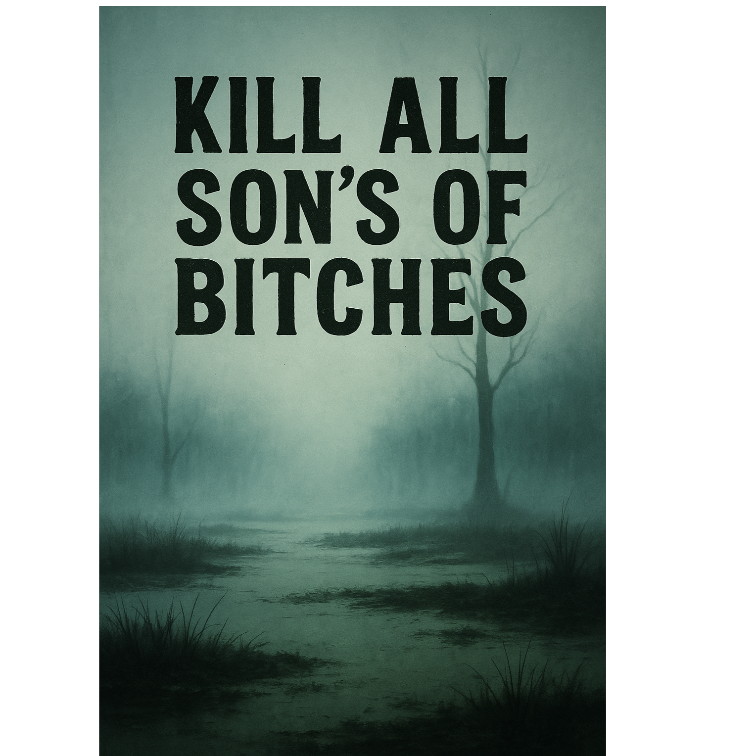 horrorcore + melodic dubstep + 80s synthwave fusion • cinematic dark intro with swamp ambience • MAKE banjo clearly audible as a lonely lead instrument — single notes plucked with metallic twang and long echo • banjo repeats softly under synth bass rise • natural southern voice sample (“Kill all them sons’a bitches…”) • deep analog pads and ambient insects • tone of emptiness before chaos