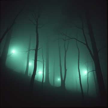 Soft radio ping repeats through fog, Banjo echoes quietly in the distance, each pluck hanging in air, Low synth pad rises like morning fog; a light wind moves through the trees, • 0:40 – 1:30 | “Approach”