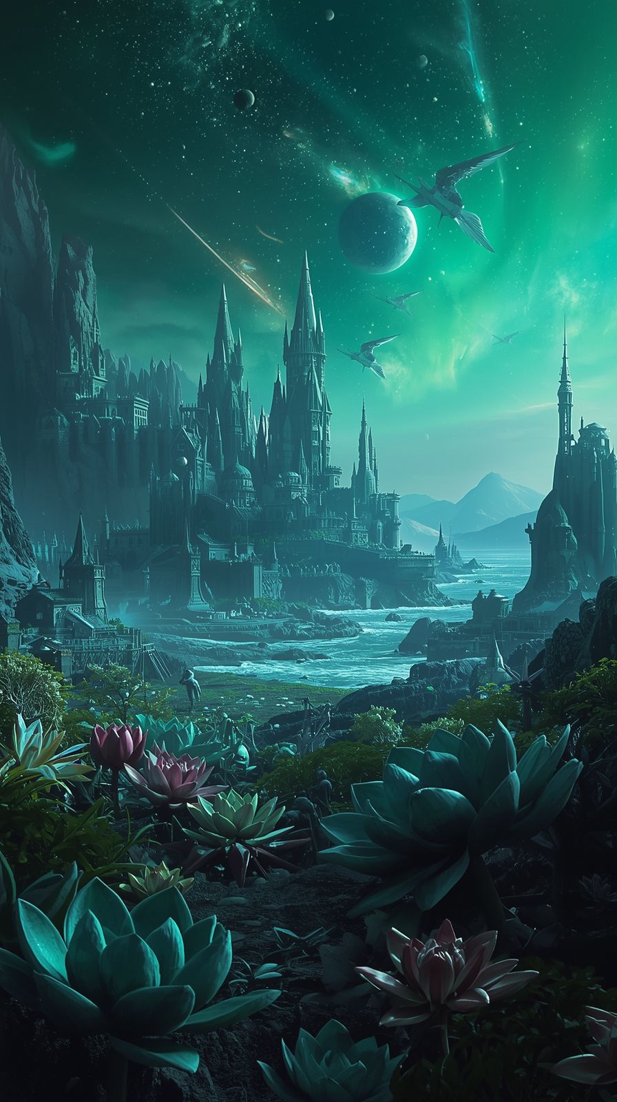 Psychedelic space rock with floating synth layers, slow tempo, and echoing guitar melodies, Inspired by classic 70s progressive psychedelia, Long instrumental passages, hypnotic rhythm, atmospheric build-ups, Emotional and introspective mood, like traveling through cosmic landscapes, male vocals Gargoreis Hans, female vocals Amazondes Jolanda