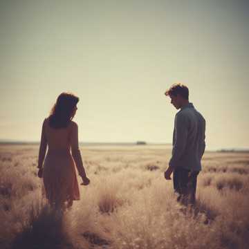 A melancholic pop song with male & female lead vocalist duo, The song is in a minor key and features a moderate tempo, The instrumentation includes acoustic guitar, bass guitar, drums, and a keyboard playing sustained pads, The acoustic guitar plays arpeggiated chords throughout the song, providing a gentle rhythmic foundation, The bass guitar provides a walking bass line that outlines the chord progression, The drums play a simple, steady beat with a focus on the kick and snare, occasionally adding light cymbal work, The keyboard pads create a spacious and slightly somber atmosphere, The vocalist sings with a clear tone, delivering the melody in a relatively narrow vocal range, The song structure follows a typical verse-chorus format with an instrumental bridge, The production is clean, with a balanced mix that allows each instrument to be heard clearly, There are no prominent effects on the vocals, maintaining a natural and intimate feel, The overall mood is reflective and wistful