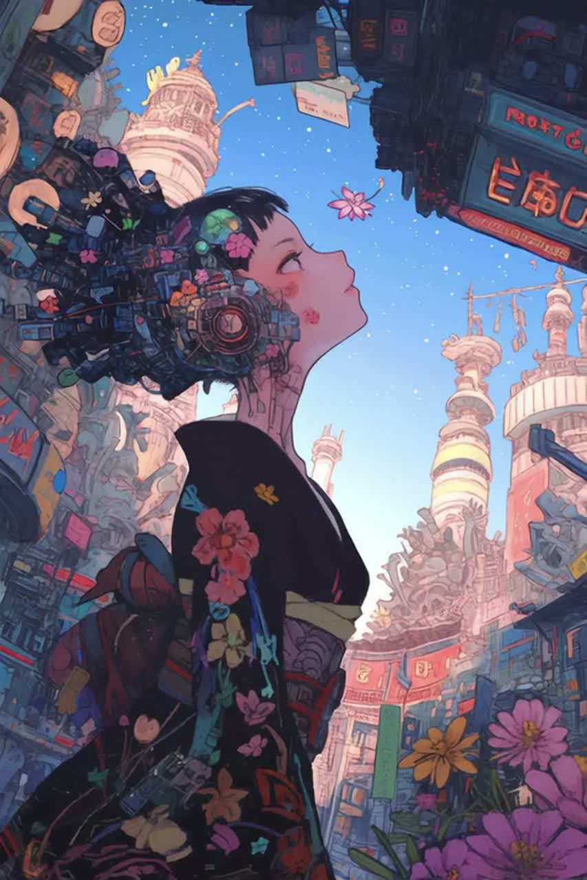 city pop, 2030, female kawaii vocalist, hip hop, jazz, melancholic, glitch, avant-garde, groovy, fast tempo, heavy bass