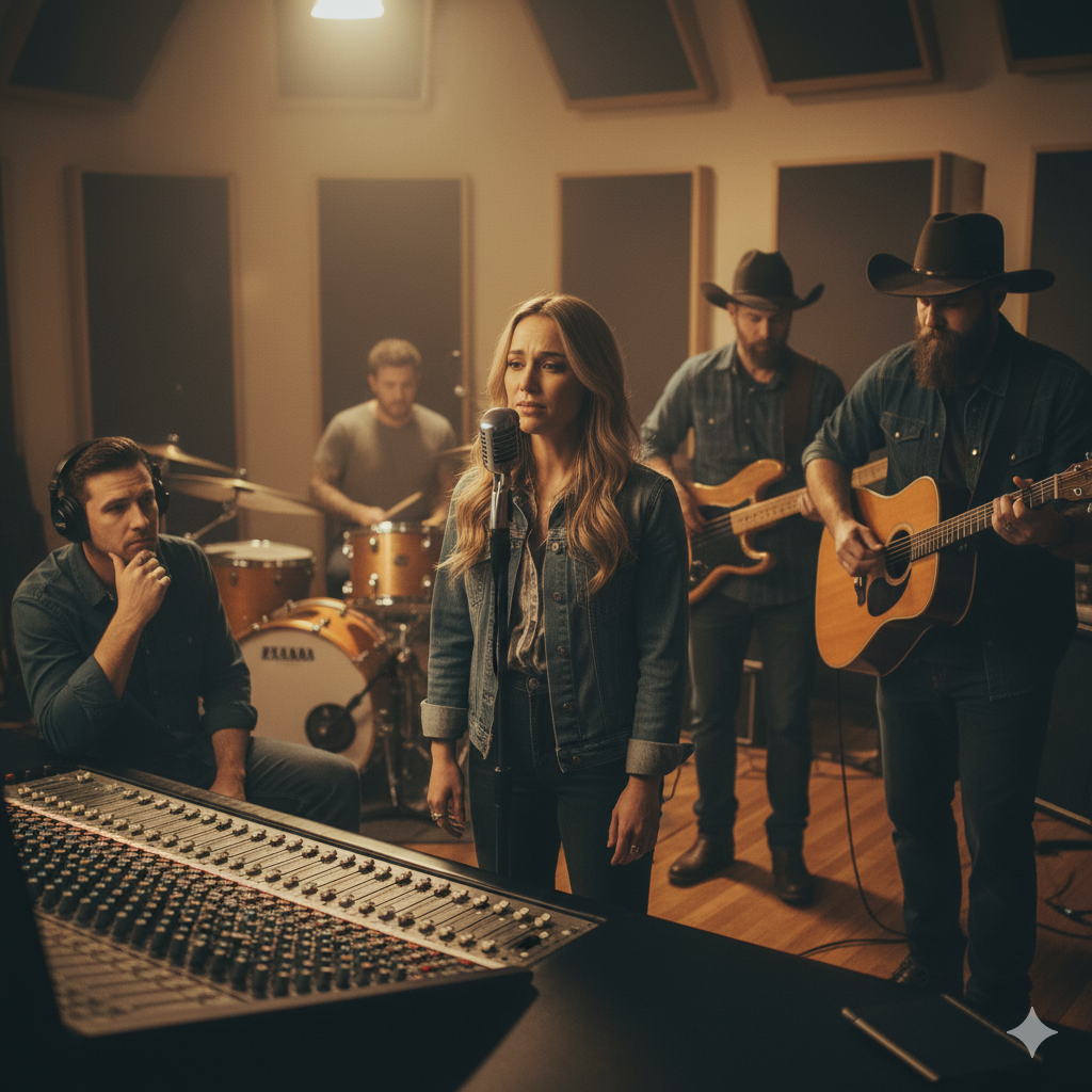 A 1990s-inspired country track featuring warm Spanish male vocals, Lundberg-Martin 12-string, twangy acoustic guitars, and layered subtle harmonies, The verses use fingerpicked guitar and gentle percussion, building into full-band choruses with rich melodic leads, steel guitar flourishes, and rootsy upright bass, ‑-female