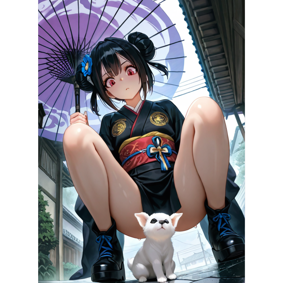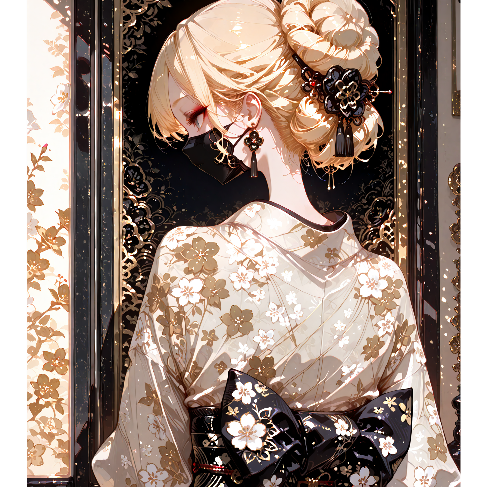 Delicate Japanese female vocal, soft and wistful tone with ancient poetic phrasing, Mix of lo-fi piano, French house chords, glitch percussion, and soft garage groove, Gentle sidechain rhythm with vinyl texture and rainy ambience, Tempo: 90–100 BPM, Key: E minor, Mood: nostalgic, elegant, melancholic yet tender, Vocal chops and reversed samples to evoke the illusion of memory and afterlife