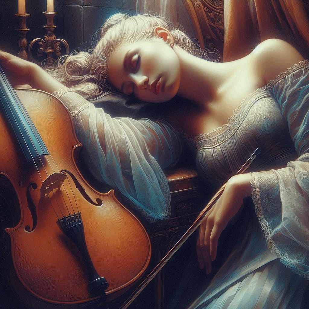 An orchestral soundtrack inspired by French impressionism, ethereal female vocals, Lush string arrangements, delicate piano melodies, and ambient textures combine to give it emotional depth, Capturing the balance between light and dark, it conveys a sense of tragic beauty and introspection