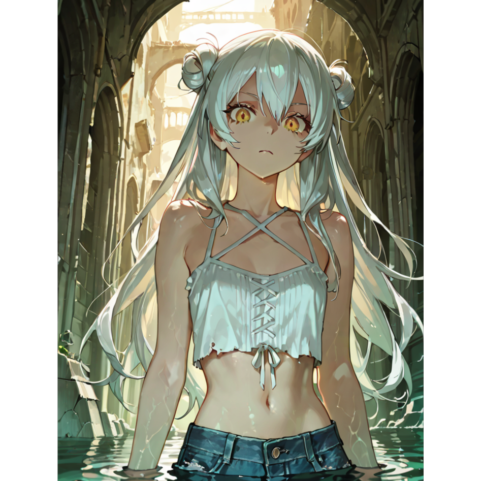 avant-garde kawaii future bass, ambient glitch, ethereal female vocal, water and reverb textures, deep sub bass, reversed piano, granular synthesis, organic noise layers, atmospheric soundscape, cinematic and sacred mood, hybrid electronic orchestration, slow tempo (105 bpm), key: E minor, emotional and transcendental