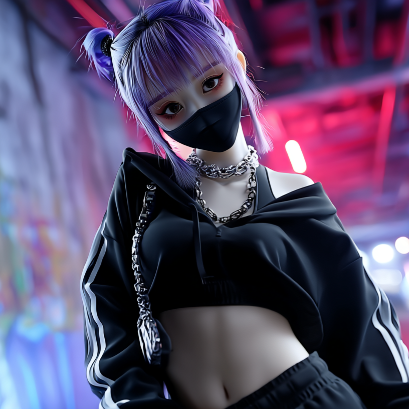 Female rapper, Korean-English hybrid, dark trap, sharp nasal tone, slightly metallic and raspy, high-pitched, very heavy auto-tune, punchy rhythmic flow, cold and confident, controlled rasp, crisp consonants, Korean and English words blended naturally, use as reference for consistent vocal style, Dark trap beat, aggressive Korean hip-hop, minor key, punchy 808s, crisp snares and hi-hats, deep sub-bass, atmospheric synths, tight percussion, cinematic tension and drops, perfect for one confident, high-pitched, heavily auto-tuned female rapper, 130bpm