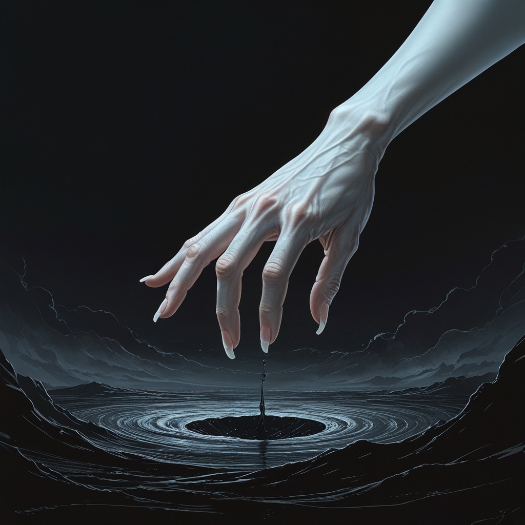 A dark liminal ambient track driven by an ARP-2600–inspired analog voice with unstable arpeggiated patterns that widen and accelerate across the stereo field, featuring aggressive auto-panning, slow detune drift, filter openings tied to psychological tension, and claustrophobic distorted vocals that fracture into ad-libs and internal chatter, creating the sensation of isolation, cognitive hostility, and mental collapse inside a damp, decaying room where no external entities exist and the only threat is the mind turning against itself, ‑Avoid polished pop production, ‑clean vocals, ‑or overused EDM build-ups