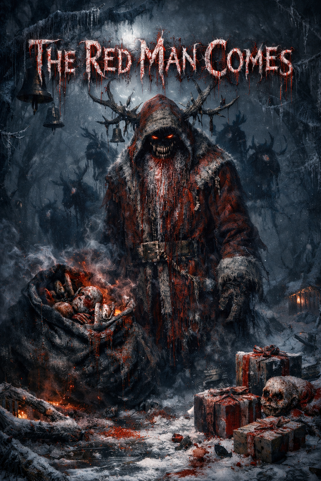 A dark folk-rock song with a sinister, narrative vocal delivery, The instrumentation features acoustic guitar, bass, drums, and a prominent cello, The tempo is moderate, and the key is minor, contributing to the ominous atmosphere, The male lead vocalist uses a deep, resonant baritone, often employing a spoken-word or half-sung style, with occasional vocal effects like reverb and delay, The song structure includes verses and a chorus, with instrumental breaks, The acoustic guitar provides a rhythmic foundation with fingerpicked patterns, while the cello adds sustained, melancholic lines and occasional pizzicato, The drums are sparse, emphasizing a slow, deliberate beat, Production elements include a wide stereo image, with instruments well-separated, and a slightly dark, atmospheric mix, The overall mood is unsettling and narrative-driven