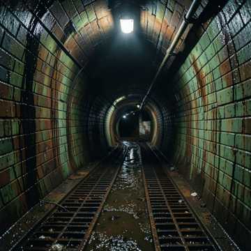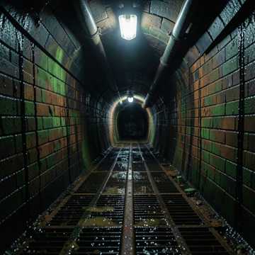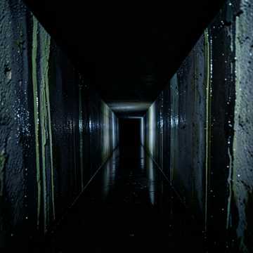 Genre: Aquatic Horror, Industrial Ambient, Visceral Dread, Survival Score, Mood: Claustrophobic, Disgusting, Slimy, Unexpected Terror, Desperate Survival, Ominous, Instrumentation: Gurgling, squelching synths, deep, resonant bass (like water movement), distorted industrial percussion (heavy splashes, clangs), unsettling low brass drones, sudden, sharp string stabs for jumps, Atmospheric Sound Effects: Constant water dripping and rushing, distant echoes, guttural roars and growls (alligator), squishy footsteps, metal grinding, Tempo: Slow and slinking, with sudden, violent bursts of speed, Dynamics: Creeping silence broken by terrifying, loud attacks, Vocals: Guttural, strained whispers, conveying discomfort and primal fear, occasional sharp cries