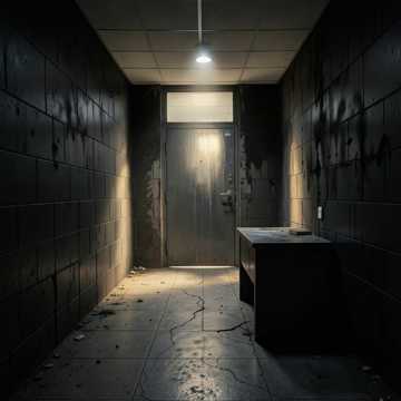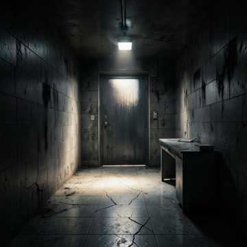 Genre: Dark Ambient, Suspenseful Orchestral, Industrial-Horror, Mood: Beklemmend, Isoliert, Trügerische Ruhe, Klaustrophobisch, Verhängnisvoll, Instrumentierung: Hallende, tiefe Streicher, melancholisches, dissonantes Klavier, subtile, metallische Percussion (Klopfen, Knarren), Tiefe Bass-Drones, Atmosphärische Soundeffekte: Tropfendes Wasser, knarrende Türen, ferne, unidentifizierbare Geräusche, leises Röcheln, ein einzelner, dumpfer Herzschlag, Tempo: Sehr langsam und schleppend, Dynamik: Kontraste zwischen fast unhörbaren Passagen und plötzlichen, tiefen Akzenten, Gesang: Düstere, hauchende Sprechstimme, gelegentlich leiser, klagender Gesang im Hintergrund