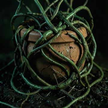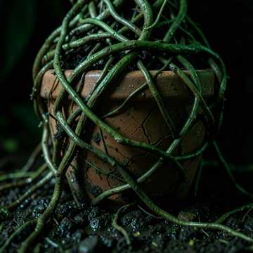 Genre: Organic Horror, Biogenic Ambient, Visceral Nature Score, Claustrophobic Dread, Mood: Suffocating, Parasitic, Entrapment, Slow Consumption, Eerie Nature, Primal Fear, Instrumentation: Creaking wood sounds, squelching bio-sounds, deep, resonant synth pads mimicking organic growth, guttural vocal samples (plant monsters), sharp, sudden string stabs, distorted flutes or wind instruments creating an unsettling, eerie melody, Atmospheric Sound Effects: Rustling leaves, snapping vines, heavy, moist breathing, buzzing insects, gurgling fluids, sudden, close-up monster growls/hisses, Tempo: Slow and creeping, with moments of frantic, struggling acceleration, Dynamics: Eerie silence giving way to sudden, overwhelming organic attacks, Vocals: Strained, desperate, breathless narrative, conveying struggle against being engulfed