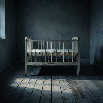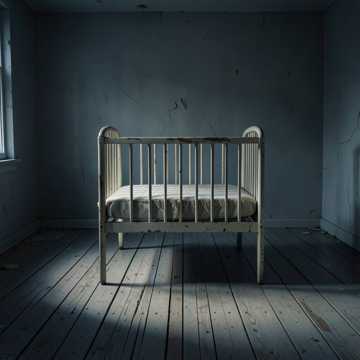 Genre: Melancholic Horror, Psychogenic Ambient, Distorted Lullaby, Emotional Score, Mood: Sadness, Fragility, Threatened Innocence, Psychological Terror, Despair, Unease, Instrumentation: Childlike, slightly detuned music box melody, mournful, sustained string pads, subtle, unsettling electronic pulses, low, barely audible percussive thumps (like a distant heartbeat or muffled struggle), Atmospheric Sound Effects: Faint, distorted children's laughter, distant sobs, creaking floorboards, whispers that sound like corrupted nursery rhymes, an abrupt, metallic slam, Tempo: Slow, dragging, with a melancholic, unsettling rhythm, Dynamics: Gentle and fragile, building to moments of psychological dread and sudden, quiet shocks, Vocals: Soft, vulnerable, almost lullaby-like singing (for parts representing innocence), juxtaposed with strained, protective whispers, and a sense of growing unease