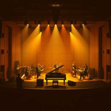 Instrumental, Modern Jazz Combo, 95 BPM, G Major, Sophisticated jazz harmony, Reharmonized chord changes, Walking bass lines, Intricate piano voicings, Grand piano, Upright bass, Jazz drum kit with brushes and sizzle cymbals, Clarinet lead melody, Muted trumpet section, Warm trombone harmonies, High-fidelity studio recording, Acoustic resonance, Spacious and clean mix, Polished modern production, Small ensemble jazz, Elegant and refined mood