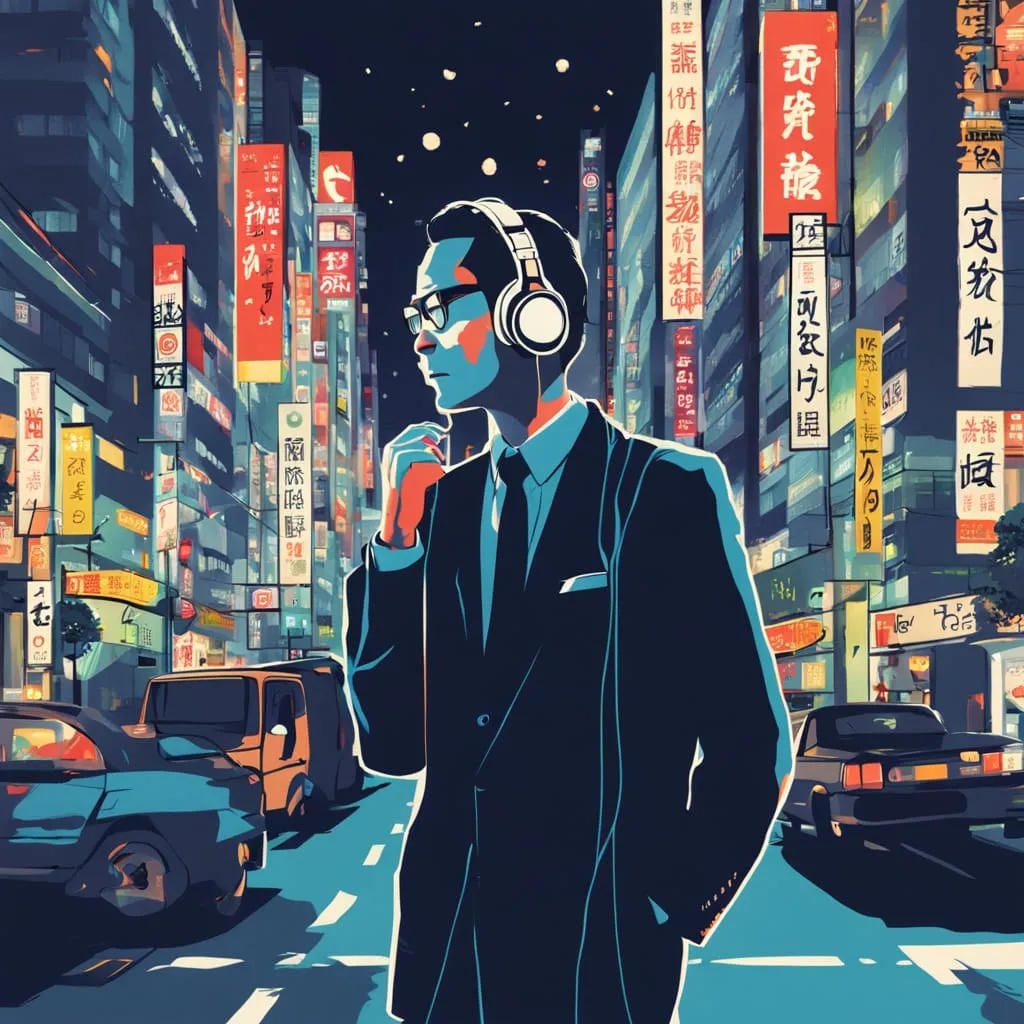 city pop, 1980s, 1990s, Instrumentation: Electric piano, slap bass, clean rhythm guitar, soft sax, analog drums, FM synth pad, vinyl crackle for ambiance late-80s City Pop track with a modern polish, Upbeat but bittersweet tone, Key of A♭ major, Tempo: 102 BPM, Time signature: 4/4, Include funky slap bass, electric clean rhythm guitar with chorus effect, warm Rhodes electric piano, dreamy synth pads (analog-style), layered FM synth leads, reverbed snare & rimshot-heavy drums, soft congas or bongos, and an expressive alto saxophone solo for the bridge, Female vocals with breathy tone and a mix of Japanese & some English lines, Song structure: intro, verse, pre-chorus, chorus, verse 2, sax bridge, final chorus with backing harmonies, and an extended fade-out, Mixed with vintage warmth, subtle tape hiss, and nighttime Tokyo ambiance, Vinyl crackle, Soft electric piano chords drift in with a subtle Rhodes tone, A mellow alto saxophone plays a lonely descending melody