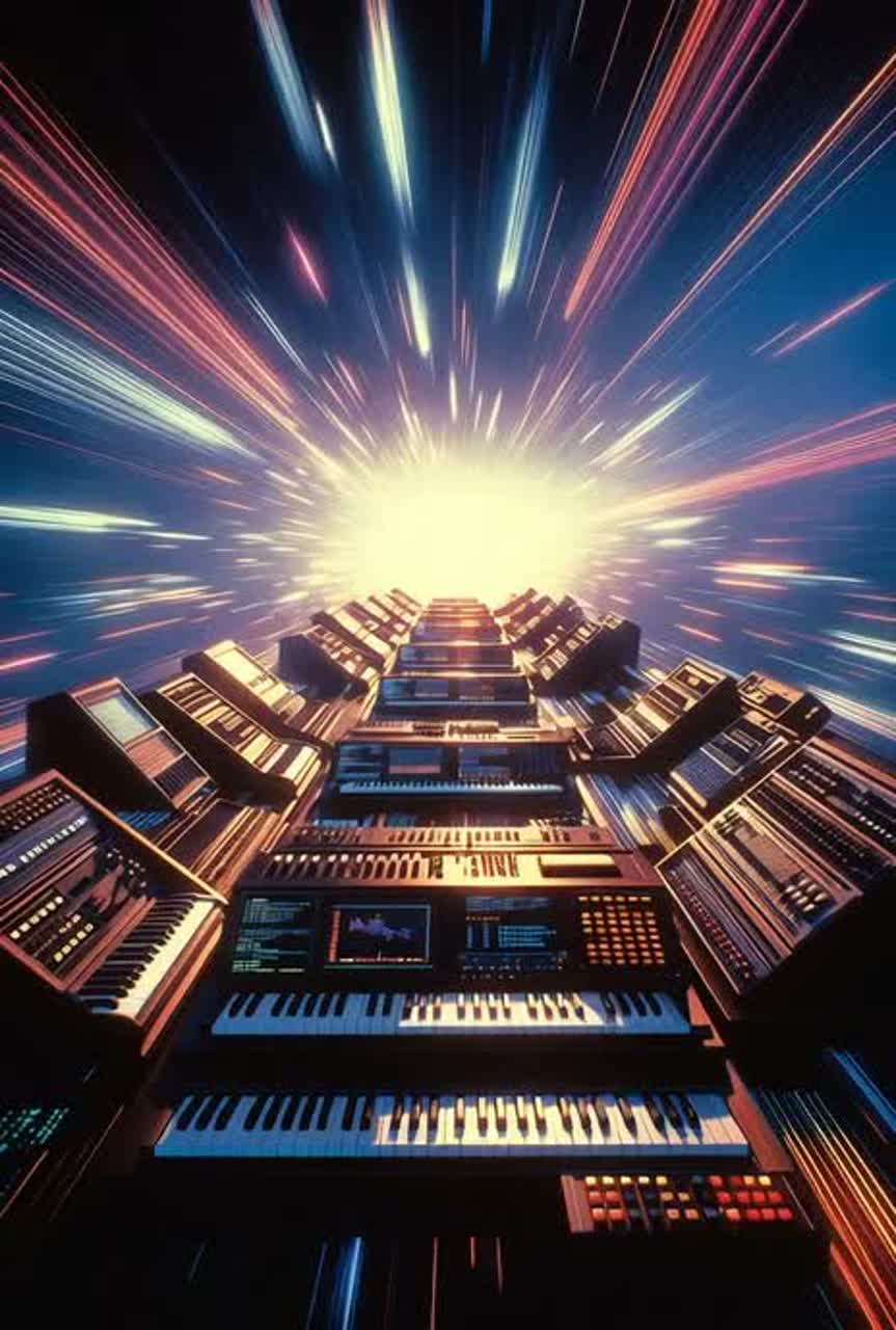Only instrumental Pure 1984-1985 Euro Disco Italo Disco infectious dance anthem Modern Talking production style, smooth romantic baritone style ultra melismatic ethereal layered, massive analog synthesizers Yamaha DX7 Roland Juno-106 dominant melodic hooks catchy infectious riffs, driving four-on-floor disco beat LinnDrum precise rhythmic backbone, slap bass funky groovy prominent, electric guitar funk rhythmic accents subtle, orchestral synth strings lush romantic swells, synth brass stabs powerful dramatic accents, arpeggiated synth sequences hypnotic pulsing, reverb drenched spacious production 80s authentic vintage sound, four long instrumental bridges 40-55 seconds synth solos orchestral builds dramatic transitions, latest edition ultra-premium viral 80s Euro Disco production emotional romantic passionate dance floor anthem international hit retro