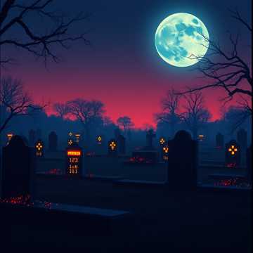 uplifting, uplifting, use eerie chiptune melodies with warm synth pads, and a subtle rhythmic pulse, keep the atmosphere haunting but hopeful, evoking a sense of mystery and quiet triumph, soft, creepy graveyard music, a gentle bassline, 16-bit