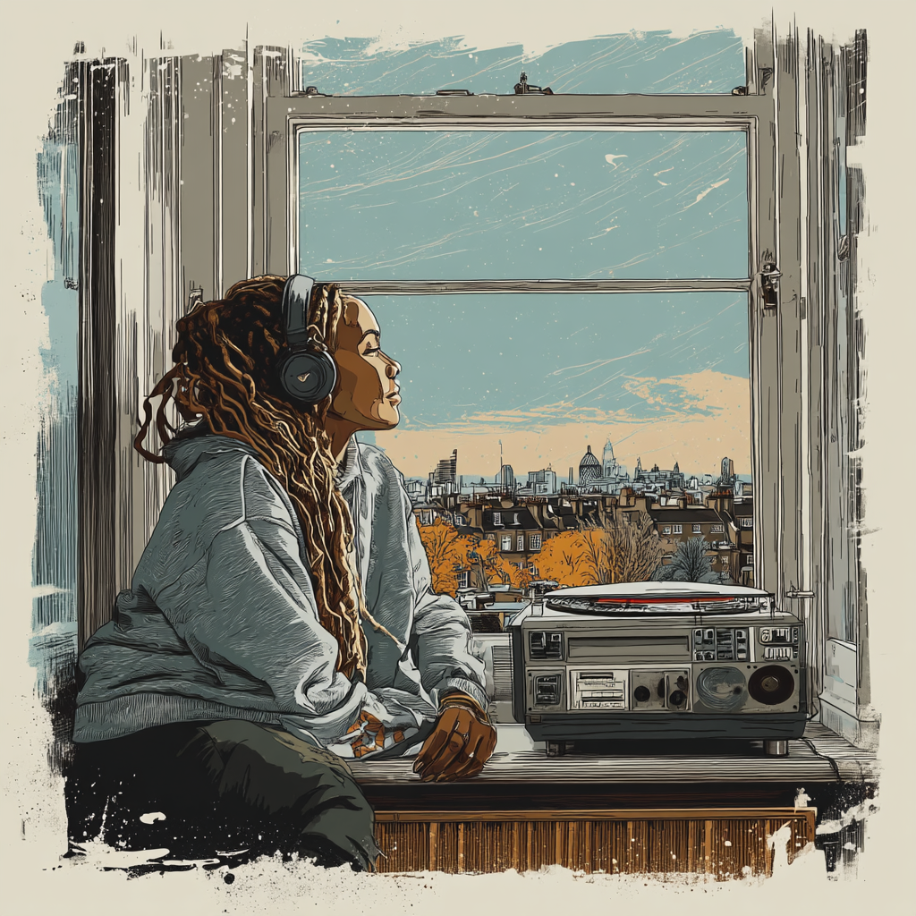 A slow, blues-infused trip-hop performance recorded in a hi-fidelity studio, Upright bass, brushed drums, Rhodes piano, and muted trumpet drift through a smoky late-night mix, The mood is urban and intimate — dim-light Brixton flat at 2 AM, rain outside, a voice remembering home, The female lead vocal is breathy, soulful, and restrained, with subtle blues phrasing and tremolo on long notes, Each phrase hangs in silence, fragile yet confident, Two soft backing voices add faint hums and echoes — never a choir, just shadows, The rhythm moves with lazy trip-hop swing and dub warmth, horns sigh between lines, and the final trumpet note fades like smoke, Recording: clean hi-fidelity studio mix, dry and balanced, no ambience or background noise, Mood: smoky, soulful, bluesy, nocturnal, reflective, cinematic, fragile, modern