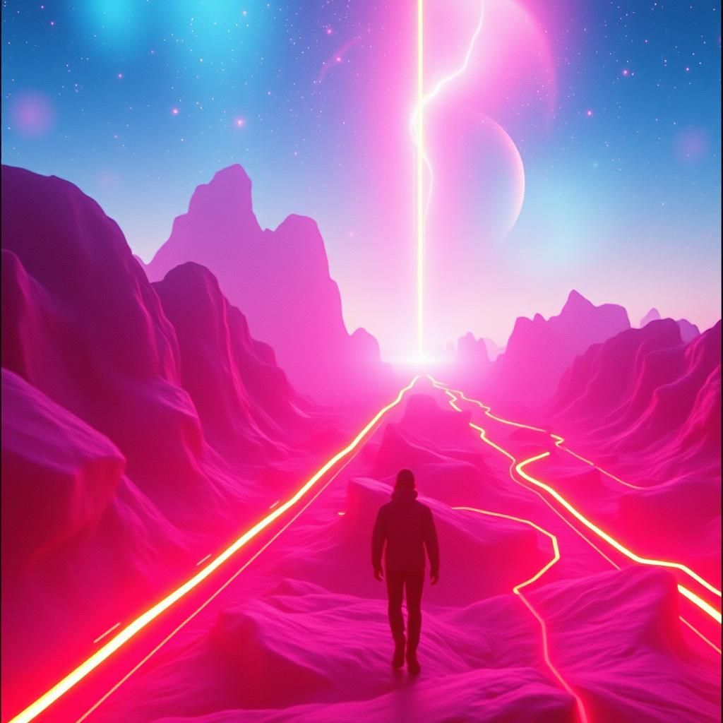 Bright synthwave, energetic beats, dreamy melodies, vibrant ’80s synths, modern electronic production, uplifting and danceable, radiant mood