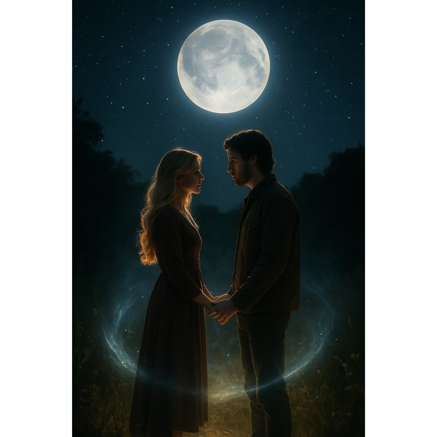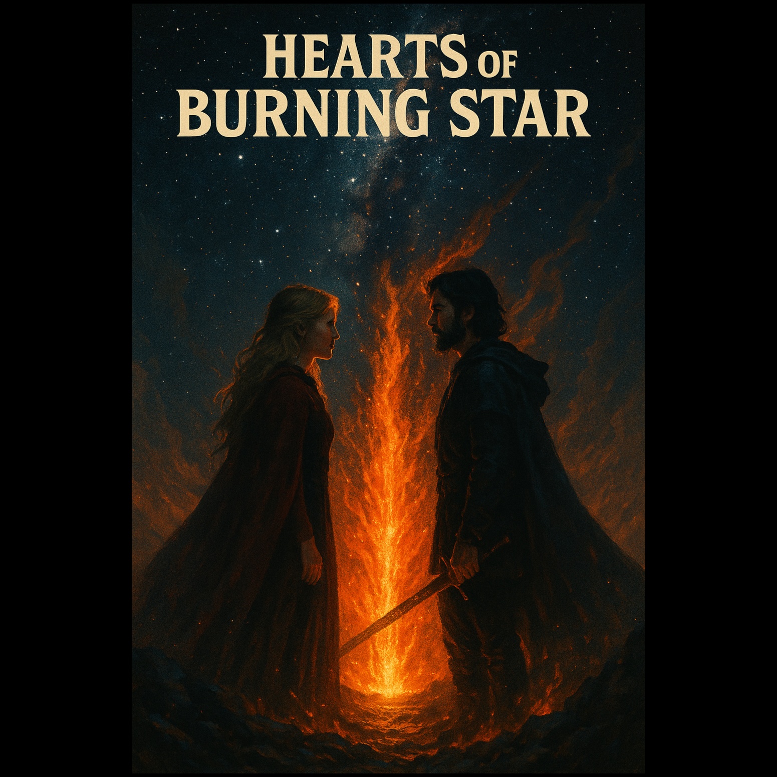 1970s-inspired progressive rock ballad with mystical atmosphere and heartfelt male vocals, Features acoustic guitar passages, rich Hammond organ, soaring electric guitar solo, and layered vocal harmonies, The arrangement begins gently, builds into a powerful chorus, and climaxes with a dramatic instrumental break, The mood is romantic, magical, and epic—telling the story of two lovers caught in a cosmic battle between light and darkness, Themes of destiny, sacrifice, and eternal love wrapped in poetic, fantasy-inspired lyrics, Atmospheric and cinematic, with emotional depth
