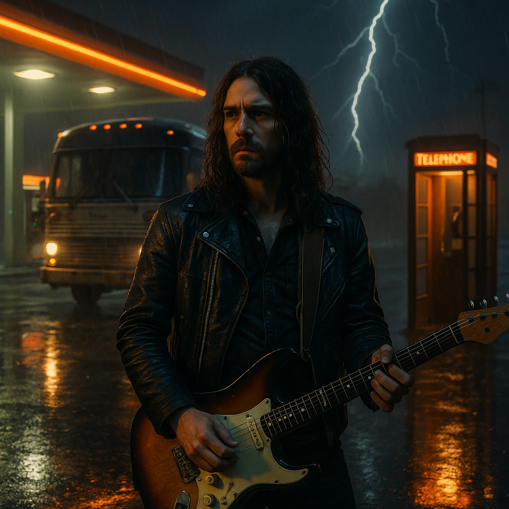 Energetic 1970s hard rock suite inspired by classic rock tours and road stories, Multiple dynamic sections with driving guitar riffs, gritty vocals, Hammond organ, bluesy breakdowns, and explosive solos, Features call-and-response vocals, rhythmic shifts, and high-energy instrumentation, The sound is raw, analog, and live-feeling, evoking the spirit of bands like Nazareth and Uriah Heep, Lyrically themed around life on the road, late-night radio, and relentless passion for music, Closes with a thunderous finale and vintage rock attitude