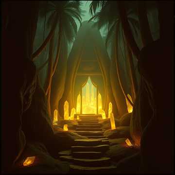 slow ethereal tribal music, deep jungle sacred temple Ambience, serene simple melody, single tempo, female vocals humming, ambient