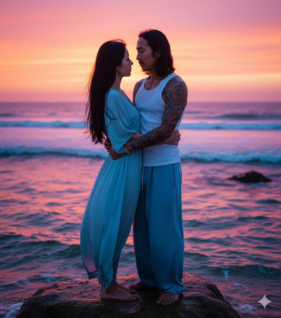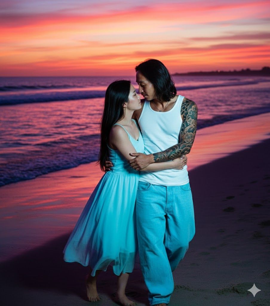 Genre: Hip-Hop, R&B, Deep, gravelly Black male voice with a Reggae Rap style performing Melodic Rap, Smooth Black R&B female vocal performing the melody, singing with a cool and happy R&B style, Jamaican style male rap, Smooth summer beach instrumentation, Hip-Hop beat, R&B melody progression, Male and female call-and-response, Climax sung together, Chorus with chromatically shifting harmonies, half-step sliding chords