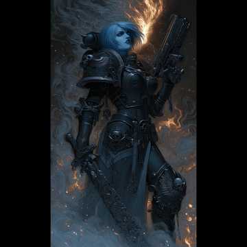Cinematic Brutal Death Metal/Metalcore, BPM: 180-220, Hz: 440 Standard, Female vocals: brutal growls, operatic cleans, whispered chants, Guitar: 7-String, Drop A, aggressive distortion, melodic leads, clean arpeggios, Bass: Deep, overdriven, supports orchestral elements, Drums: Full kit, double bass, rapid blast beats, thunderous snare, Orchestral: Haunting strings, dark choirs, ethereal chants, Atmosphere: Grand, sacred, vengeful, Structure: Brutal verses, soaring melodic choruses, cinematic bridge, furious solo, Mood: Vengeful, holy, unyielding—a Sister of Battle’s oath