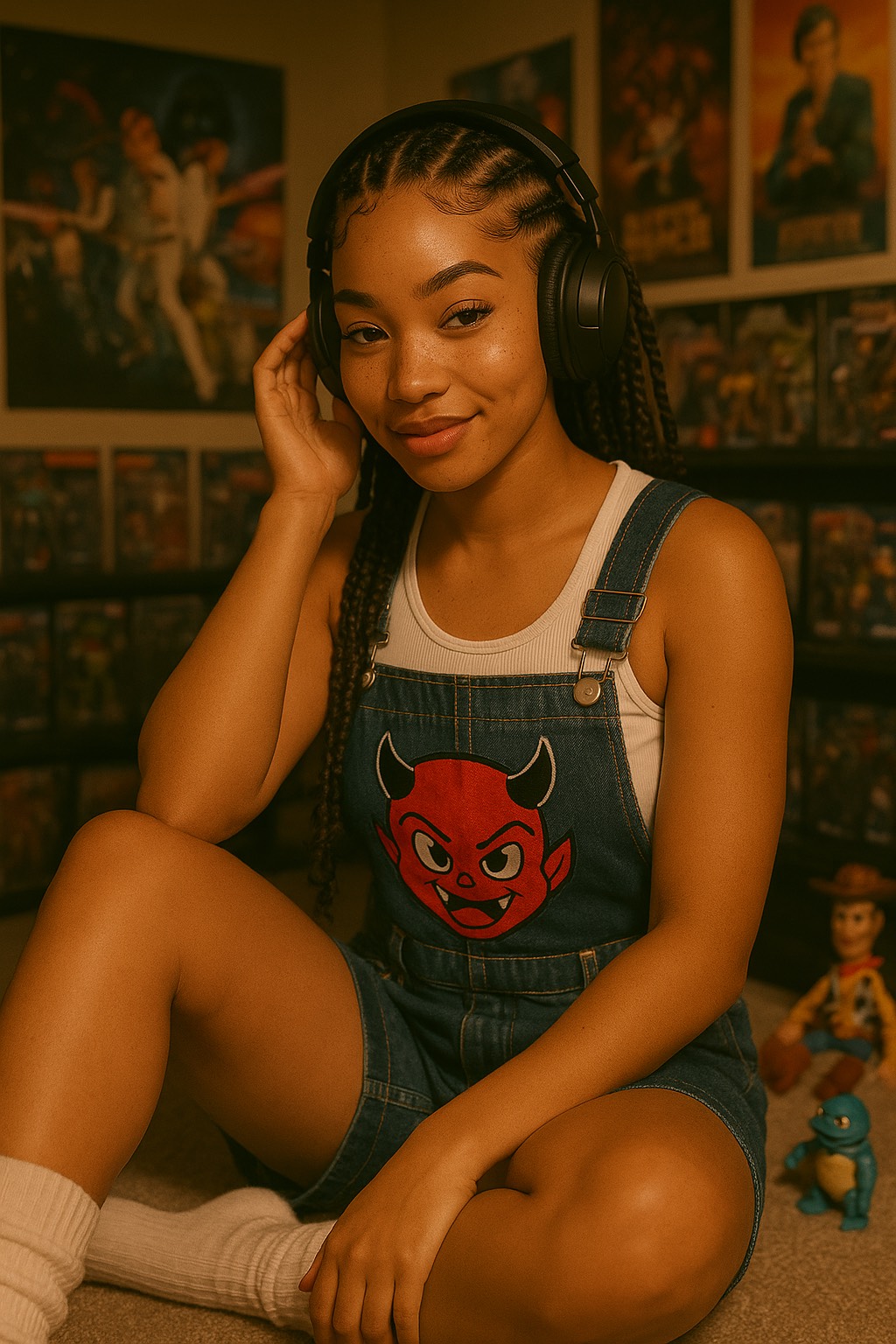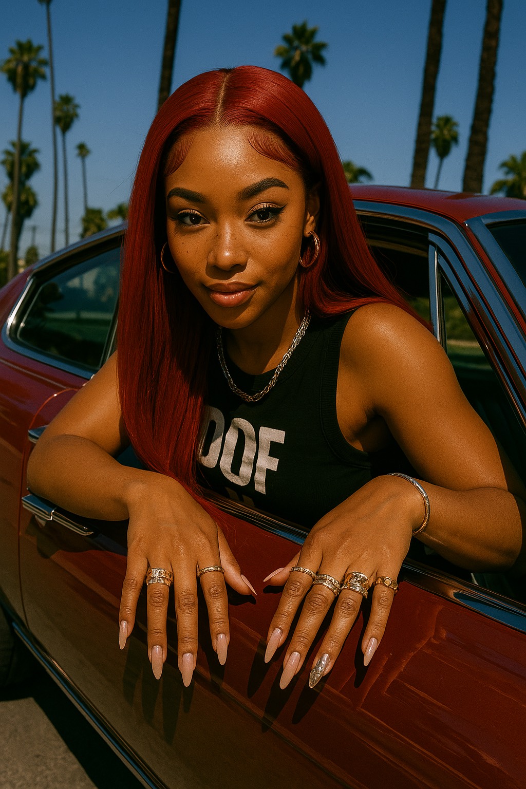 The production rides a laid-back, modern R&B beat with trap-soul drums, lush Rhodes keys, deep 808s, and smooth guitar runs tucked beneath airy synth textures, Percussion is crisp but minimal, allowing space for the vocals to bounce and breathe, The beat loops with a slight swing, creating a subtle head-nod feel, while reverb-soaked accents and muted snares add dimension, Vocal chops and reversed effects weave in and out for a hypnotic, late-night vibe, Filtered pre-choruses transition into clean, bass-heavy choruses with pocketed space for clever wordplay to shine, Subtle vinyl crackle and ambient pads in the bridge create a reflective contrast before snapping back to the final chorus, The overall mix should feel confident, warm, and elevated, with an intimate bounce perfect for headphones or nighttime drives, raspy female vocals