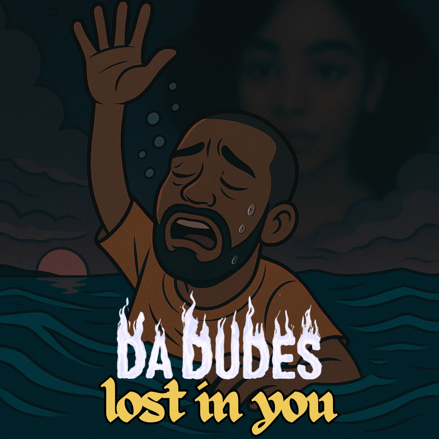 A [dark R&B trap] and [synth-pop] track with a beat blending [heavy 808 bass] with [sharp trap hi-hats] and [retro synth melodies], featuring [smooth male vocals with subtle autotune] that transition to a [more emotionally raw delivery] with [layered harmonies], The [intro] is [atmospheric and moody] with [ad-libs and harmonies], The [verses] are delivered with a [smooth male vocal tone], expressing being lost in a love that was outgrown and using substances to cope, The [chorus] is [emotionally charged], featuring [the main male vocal] repeatedly stating being lost and drowning, A [bridge] reflects on fading highs and lingering memories, An [instrumental break] features [haunting synths] with [heavy reverbs and echoes of ad-libs], The overall mood is [melancholic] yet [powerful], exploring [emotional entrapment and the feeling of being overwhelmed] within a [dark R&B trap] soundscape