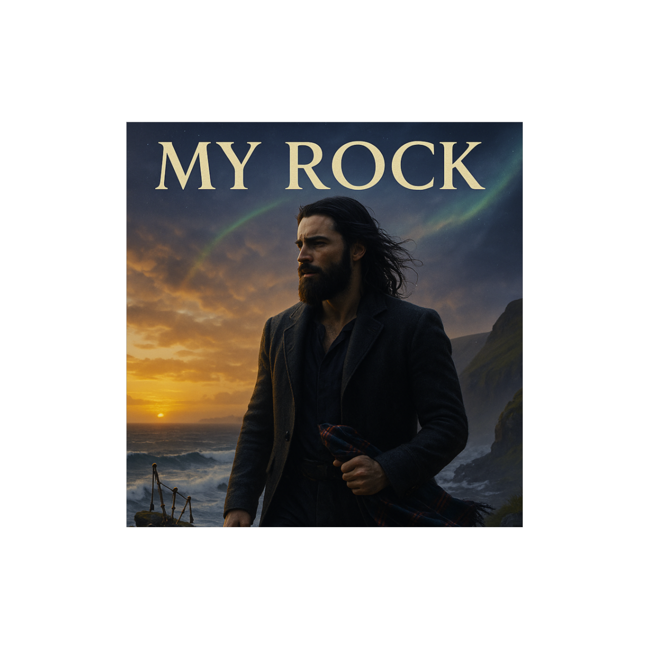 Scottish Gaelic accent A slow haunting dark Scottish Folk Electronic track starts with a sparse, melancholic solo fiddle awash in reverb, Intimate verses blend haunting fiddle, subtle 808 bass, and whispered vocals, tension mounting as bagpipes and deepening bass emerge, Choruses fuse full bagpipes, fiddle, and pounding electronic bass for an anthemic yet tortured sound, Glitchy electronic textures and varied fiddle drive the darker verse, while transitions build intensity with layered bagpipes and distorted bass, The bridge strips back to intimate vocals and minimal bass, before a final euphoric chorus erupts with the fiercest Scottish instrumentation and thunderous electronic low end, delivering a cathartic sonic release
