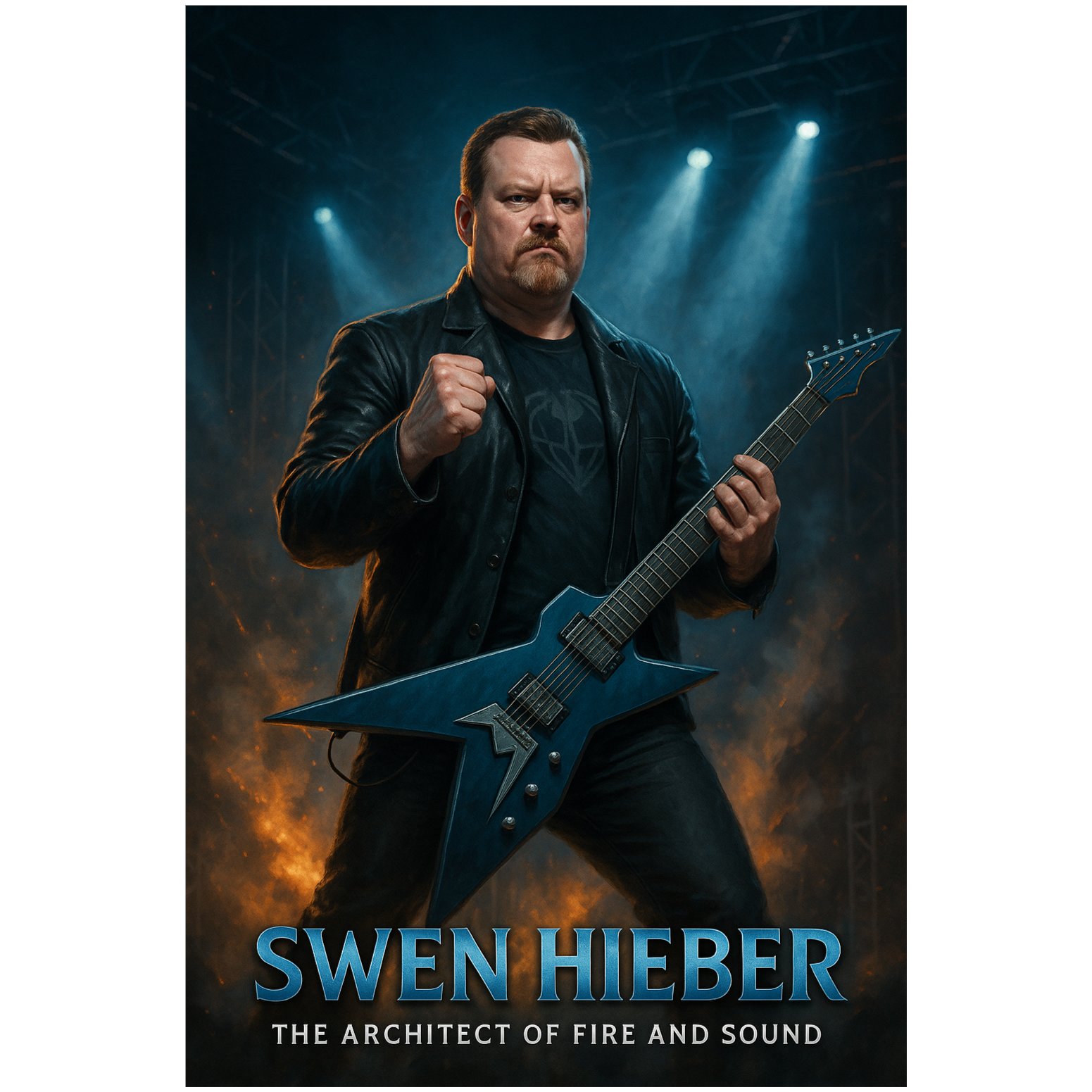 A 1979-born German bard of steel and fire stands on stage — where hard rock meets the dawn of metal, Blend late-70s analog guitar tone (Les Paul through Marshall stack) with melodic heavy riffs, a warm bass groove, and driving drums, Add cinematic choirs and subtle medieval harmonies (lute or hurdy-gurdy) behind soaring guitar leads, Vocal style: baritone (G2–D4), deep and heroic, half classic metal, half poetic bard, Lyrics reflect honor, rebellion, and the passage of time — a soul forged between disco lights and iron strings, The song builds from calm reflection to an epic, triumphant chorus, 1979, Tempo ≈ 100 BPM, 4/4, key E minor, Emotion: powerful, nostalgic, legendary