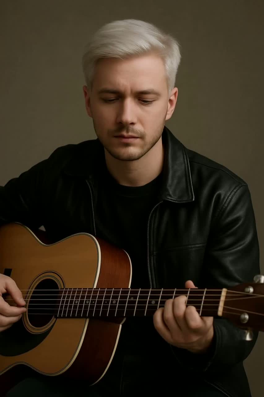 Slow Acoustic Ballad, Raw Male Vocals, Palm Muted Guitar, Staccato Acoustic Riffs, Minimalist, Unplugged, Intimate, Deep Voice