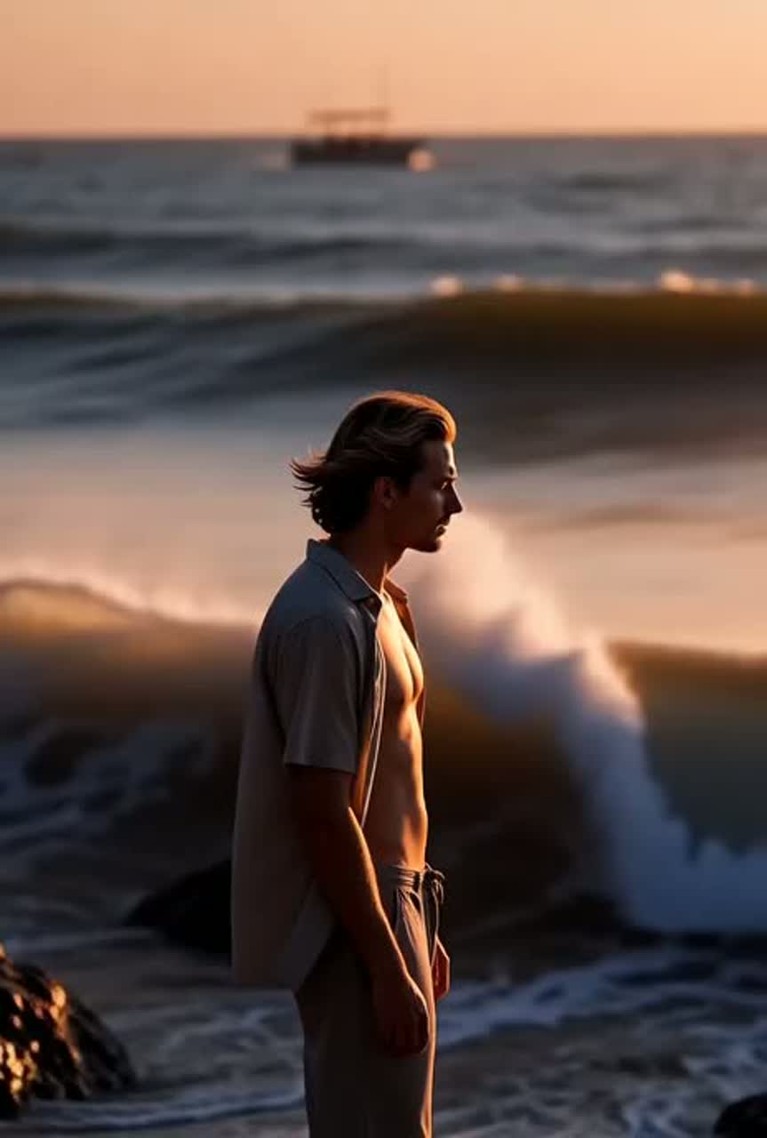 Surf Rock, Major, 140BPM, Clean male guitar lead vocal, Electric Guitar 1 (using tremolo arm to create wave-like modulation, bright and bouncy melodic lines, expressive phrasing), Electric Guitar 2 (half-muted strumming for rhythmic emphasis, percussive cutting patterns, adds lively groove), Electric Bass (fingerstyle playing, clear low-end support, bouncing rhythm to match guitars), Drums (tight snare and tom rolls to enhance drive, hi-hat patterns mimic wave motion, energetic fills), Organ (reverb-heavy chords to fill space and create airy texture), Overall impression bright and cheerful, evokes summer seaside scenes, energetic flowing rhythm, playful melodic lines, surf atmosphere with dynamic oceanic feel