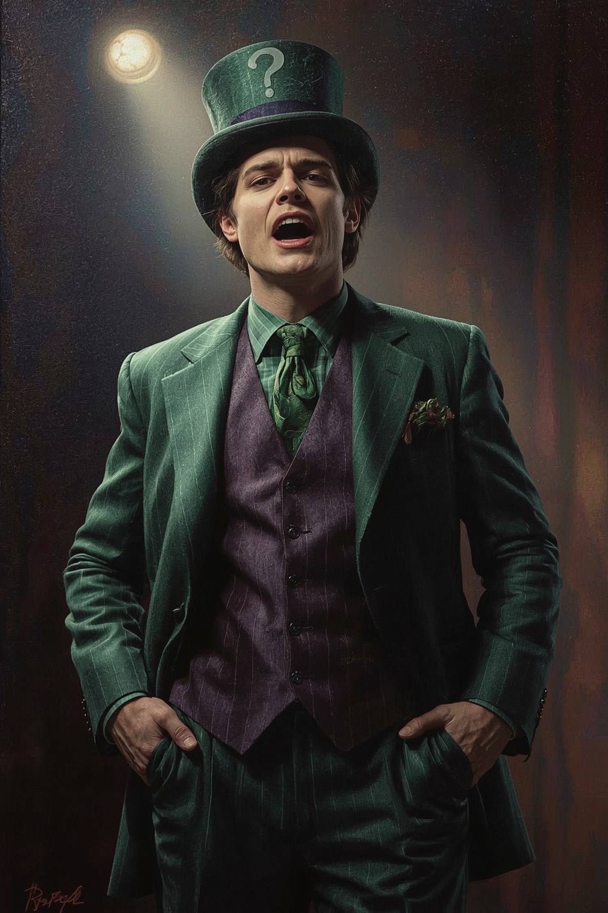 dark cabaret / theatrical rock, blending sardonic wit with sharp, deliberate tension, The mood is smug, obsessive, and playfully menacing, driven by crooked piano, upright bass, brushed drums, staccato guitar accents, and subtle brass or strings for flair, Male vocals are spoken-sung and articulate, delivered with a knowing sneer and precise timing, shifting between conversational taunts and controlled melodic lines, as if the singer is enjoying every step of the game