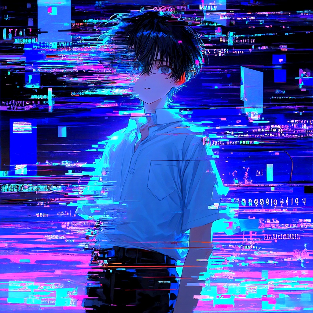 Genre: Modern J-Rock, High-energy Alternative Rock, J-Pop Punk mix, Tempo: 175 BPM, Fast-paced, Energetic, Rhythm: Driving 8th note guitar riffs, punchy and aggressive drum beats with syncopated basslines, Instruments: Overdriven electric guitars, thick distorted bass, powerful acoustic drums, subtle industrial synth textures for the "digital" atmosphere, Structure: Intro -> Verse 1 -> Verse 2 -> Pre-Chorus 1 -> Chorus -> Verse 3 -> Verse 4 -> Bridge (Dramatic drop/Whisper) -> Pre-Chorus 2 (Explosive build-up) -> Chorus -> Outro, Melody / Harmony: Melody: catchy, memorable, hook-driven, Dramatic chord progressions shifting from a tense Minor key in Verses to a soaring, triumphant Major key in the Chorus, Chorus: big melodic hook, Vocal: Topline: clear pop vocal melody, Emotive and powerful male/female vocals, Raspy and gritty in the verses, whispered and creepy in the Bridge, soaring and melodic in the Chorus, Mood: Aggressive, Rebellious, Intense, Cathartic, Liberating